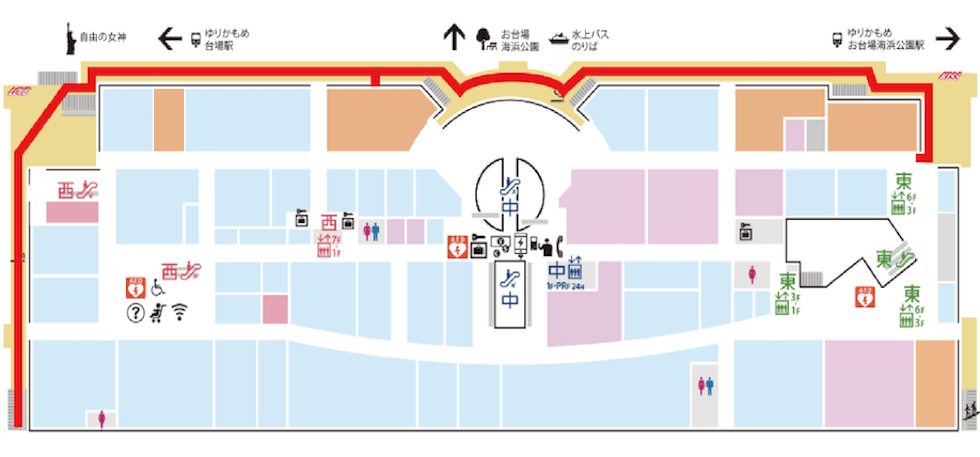 なお、アクアシティお台場外周部の歩道は「駐輪(自転車・バイク)禁止」となっており、「警察署による駐輪禁止取締の対象」となりますので予めご留意ください。